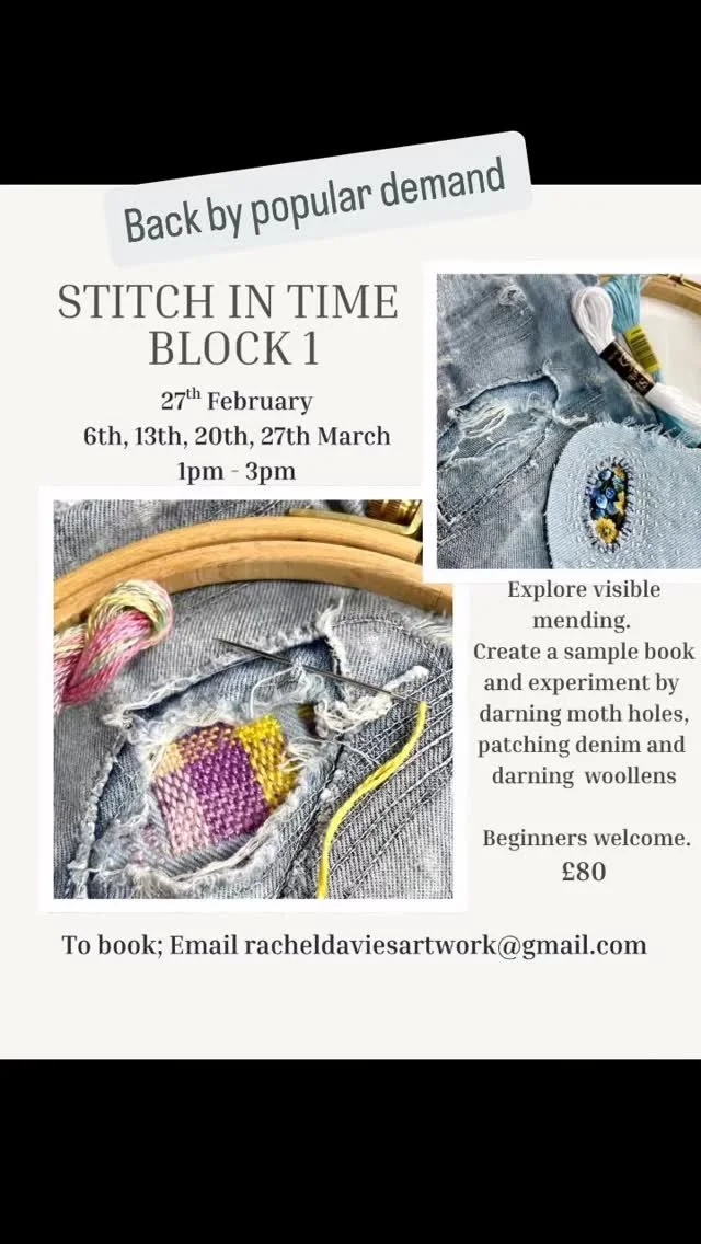 I left teaching in 2021 to pursue a career as a self-employed artist. I create paintings inspired by nature, paint murals to commission, upcycle garments, teach stitch and textile workshops, and deliver talks about my work. The images below are from my regularly updated Instagram feed: @racheldaviesstudio